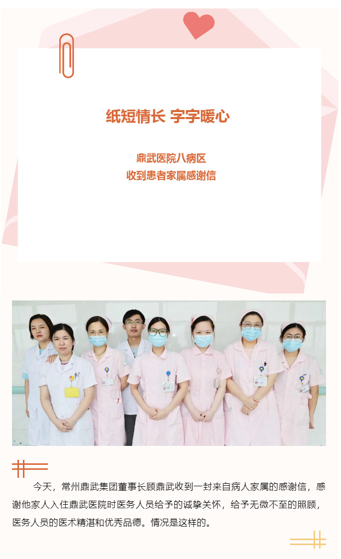纸短情长 字字暖心——鼎武医院八病区收到患者家属感谢信