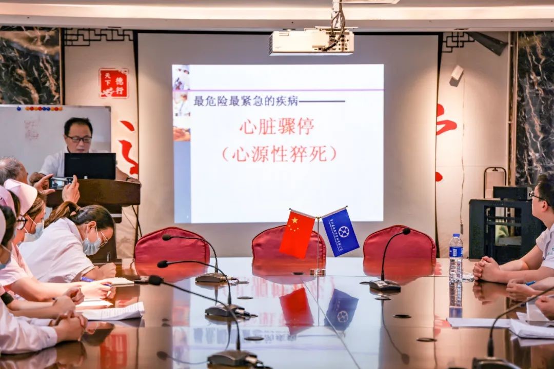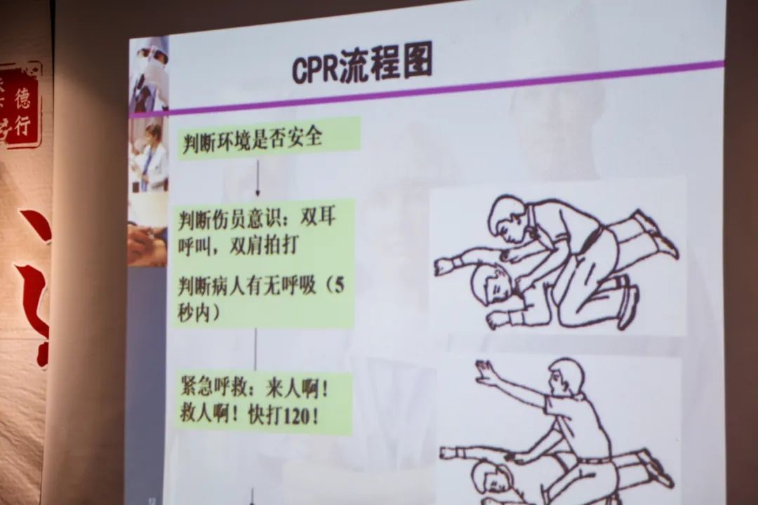 副院长肖岗负责讲授:目前在我们身边出现猝死的例子不在少数,如果出现猝死的情况,真正救人的第一要素就是要尽早的进行CPR,也就是心肺复苏。