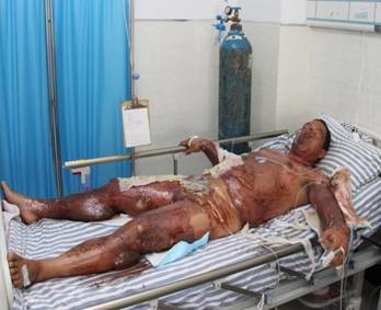 河南省平顶山鲁山县孙庄村李建新,自由职业,今年38岁,今年4月来常州工作,经朋友介绍做运输开水送浴室的生意,8月4日,他像往常一样,送开水到鑫东海浴场,由于车子管道接头发生意外,突然破裂,热水喷涌而出,李建新躲闪不及,被开水烫伤,随即送我院治疗。